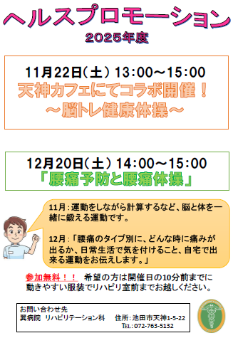 大阪 池田を中心に、心臓血管、内科、外科、整形外科、リハビリと総合的な医療を目指して。